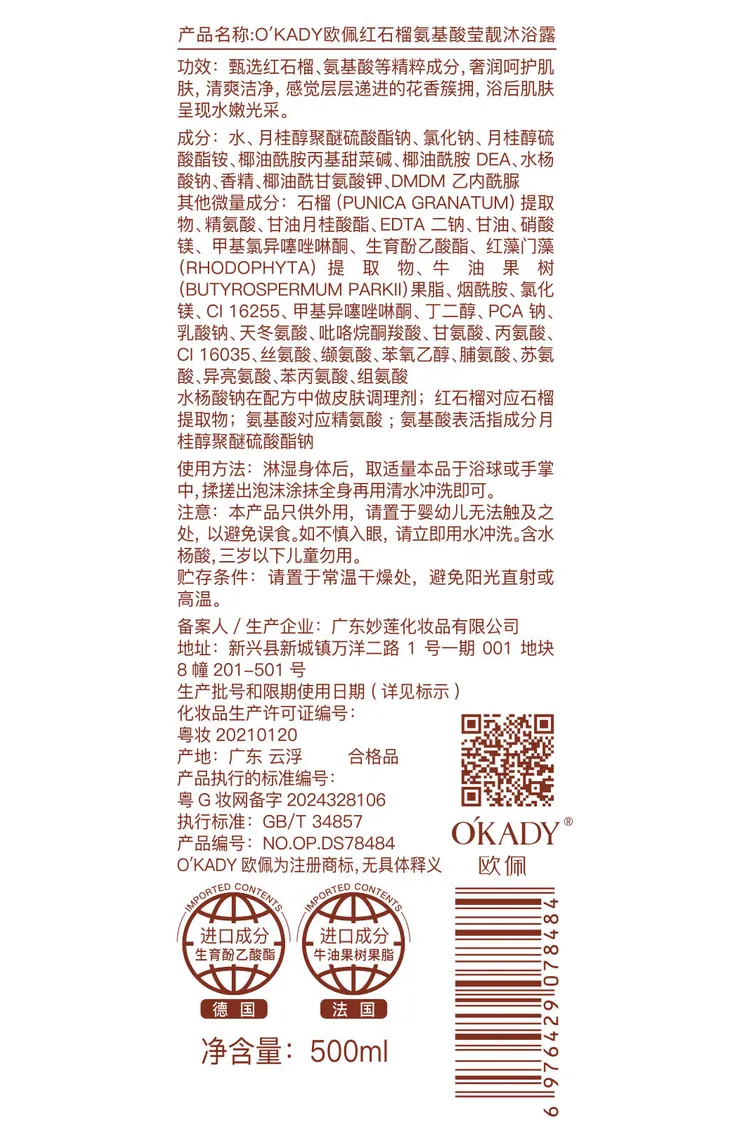 OKADY歐佩 紅石榴氨基酸瑩靚沐浴露